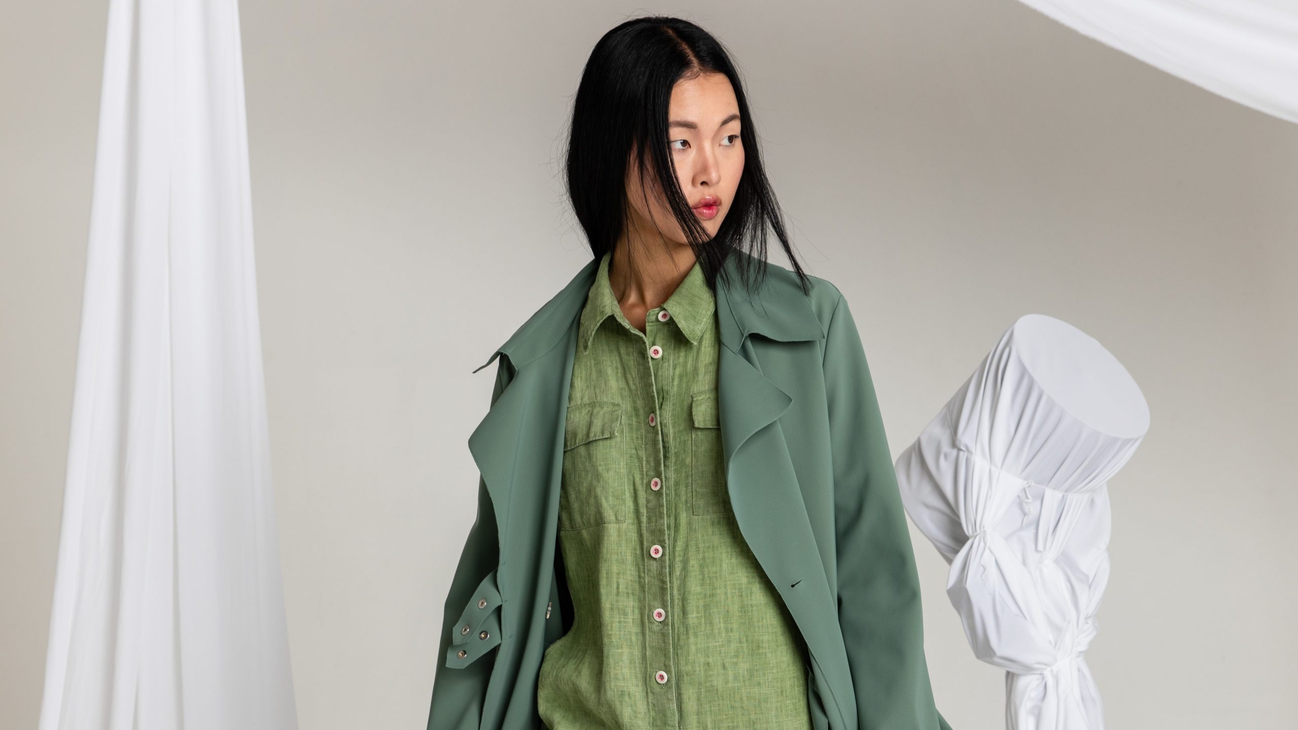 Il trench è un capo senza tempo ed elegante che nella sua semplicità rende il look sofisticato. Opificio Modenese ha rivisitato il classico trench, rendendolo più interessante con un’allacciatura particolare sul davanti e lo ha realizzato in un bellissimo color salvia.