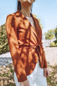 Potete acquistare il nostro blazer destrutturato direttamente dal nostro shop online cliccando qui, disponibile in ruggine.