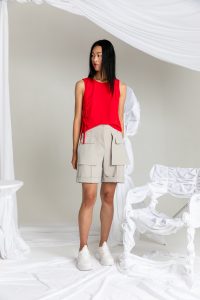 Come i mini dress, tornano in voga i pantaloni corti, specialmente i bermuda. Opificio Modenese ha creato: Carpinteria, un bermuda in stile cargo, e Bar Harbour, è una tutina senza maniche con tasche sui lati.