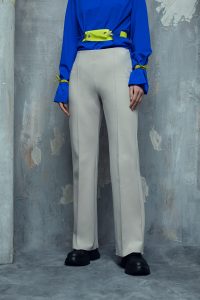 For our final stop, we travel to Portland. It’s a city surrounded by lush greenery and a haven for nature lovers. OPI[MO] has created these high-waisted pants with front ribbing. With a comfortable fit and a flare at the bottom, they are inspired by the charm of this city.