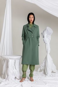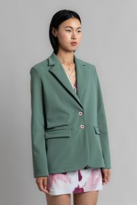 With a nice pair of jeans and a jacket, you can’t go wrong. We recommend our Treasure Island pants in practical sensitive fabric with denim print to be chic and comfortable all day. On top, you can pair it with a simple white T-shirt and a jacket in a nice color. Opificio Modenese suggests sage green, perfect for spring. We’ve designed Haleiwa, an oversized jacket, single-breasted with two custom Opificio Modenese magenta corozo buttons and three pockets.