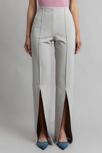 For a comfortable and breathable outfit, the best option is to choose loose-fitting garments that allow for free movement, like Opificio Modenese pieces. We recommend the Panama City shirt, a shirt with a masculine cut, with recycled mother-of-pearl buttons; and the Coronado pants, high-waisted with ribbing and cuts at the front below the knee that create the elephant leg shape.