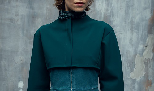 We offer you a sophisticated look, suitable for the office, with high-waisted pants and a sand-colored trench coat worn with a blue blouse. Or this petrol blue dress with a high-neck bodysuit underneath and an elegant cropped jacket on top to complete the look.