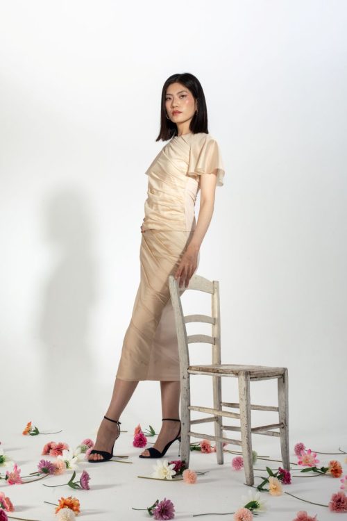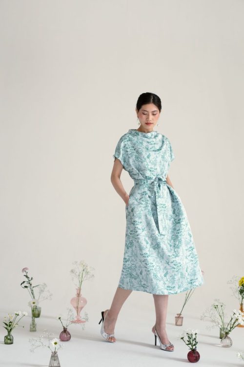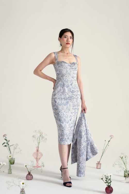 A sophisticated mix of materials intertwines with oriental-inspired patterns, giving life to silhouettes designed to enhance femininity. The shapes are refined, the silhouette is expressed with elegance and character, and every detail celebrates the beauty of the female body with timeless class.